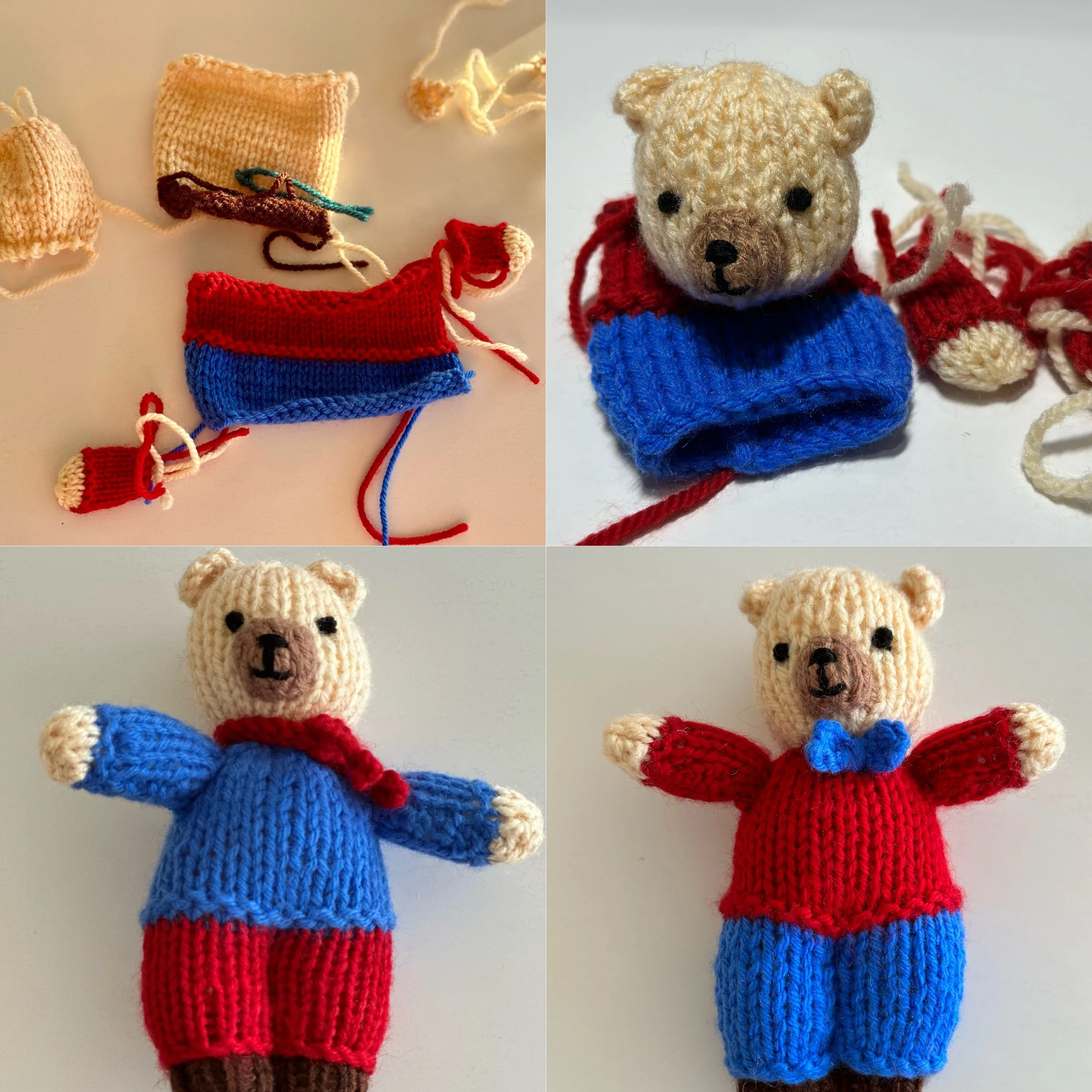 Hand knit bear - padded with polyester toy stuffing.